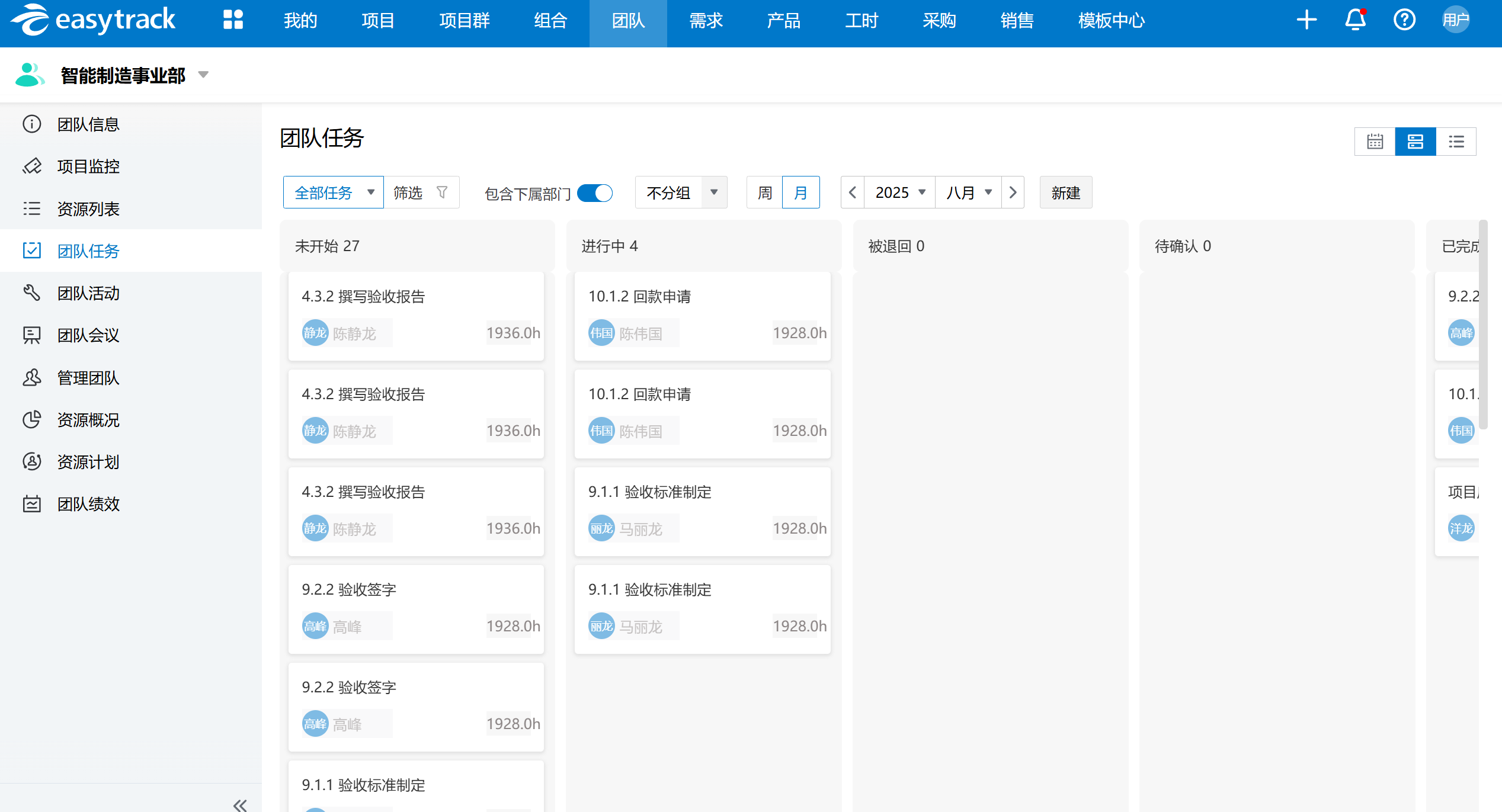 易趋项目管理平台提供资源管理功能,企业可建立资源池,集中维护成员信息;制定资源计划,合理分配与跟踪团队成员工作任务,提升效率。