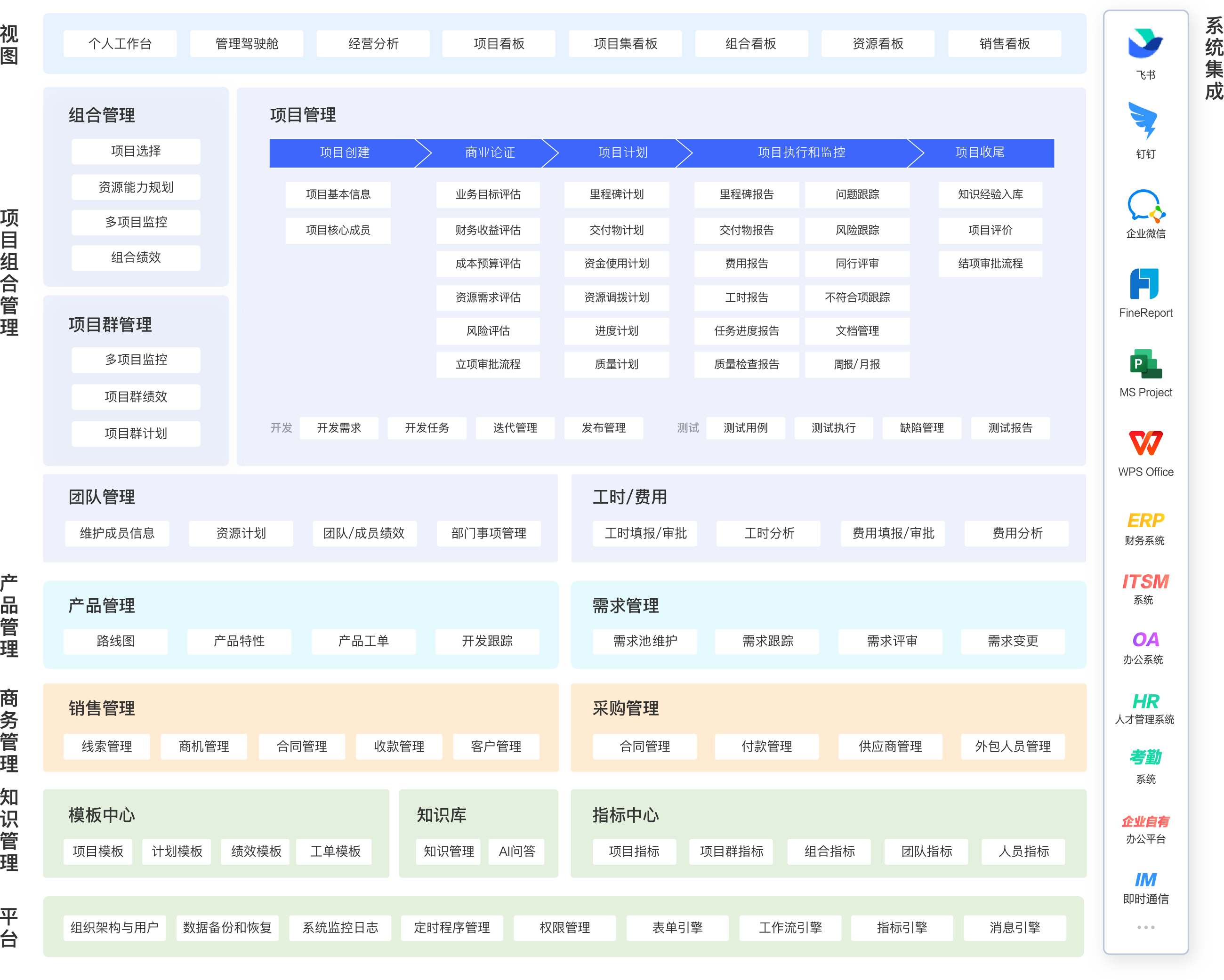 项目管理为数字化落地提供了系统化实施路径,通过项目化运作将数字化目标细化,确保其从规划到评估全生命周期有序推进。缺乏贯穿于业务链的项目管理工具,将无法贯通各个业务端,实现全链路数据打通,企业数字化转型也就空中楼阁了。