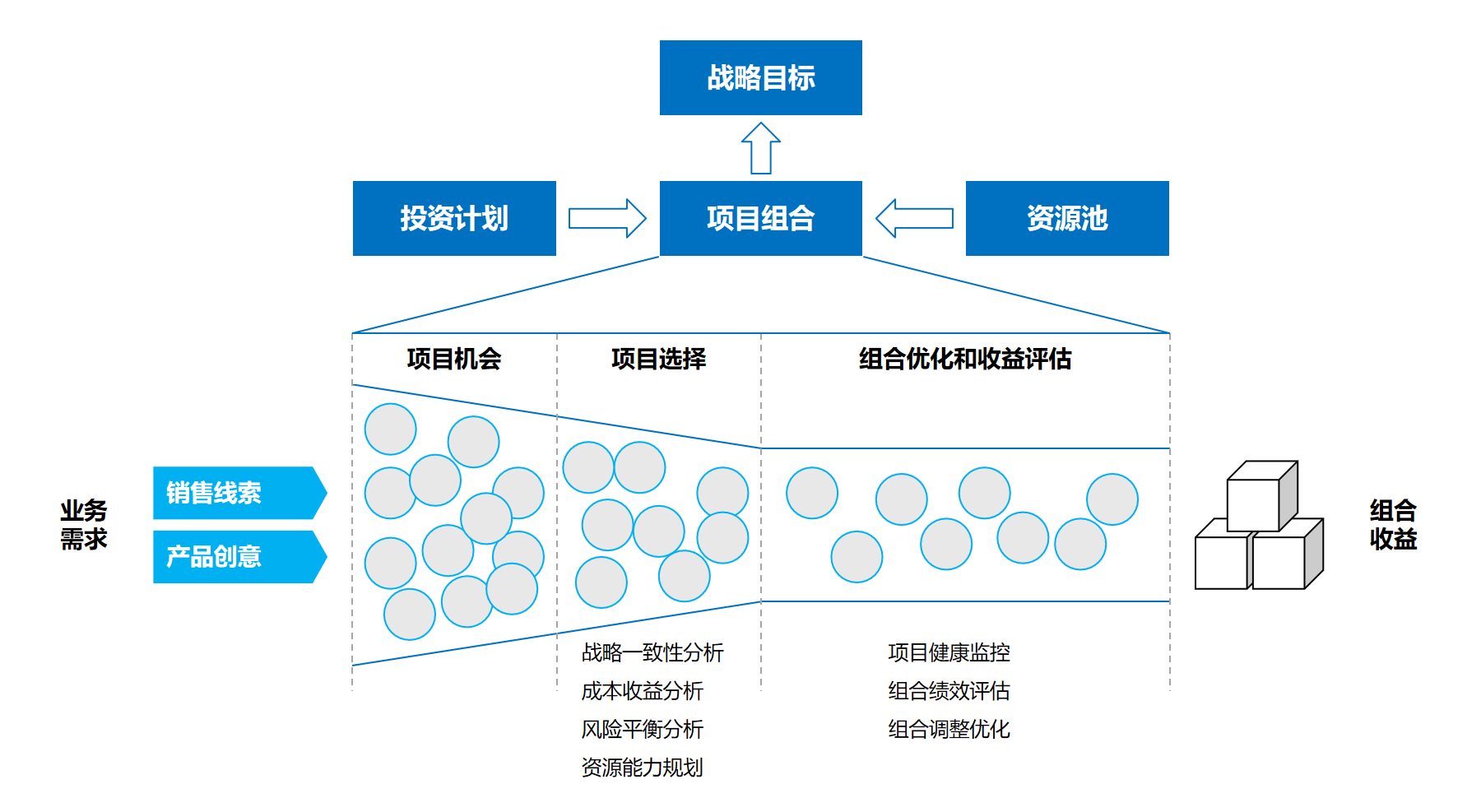 将战略目标转化为具体的项目组合与投资计划,通过数据驱动的方式进行项目选择与优先级排序,确保资源投入在最具价值的地方。