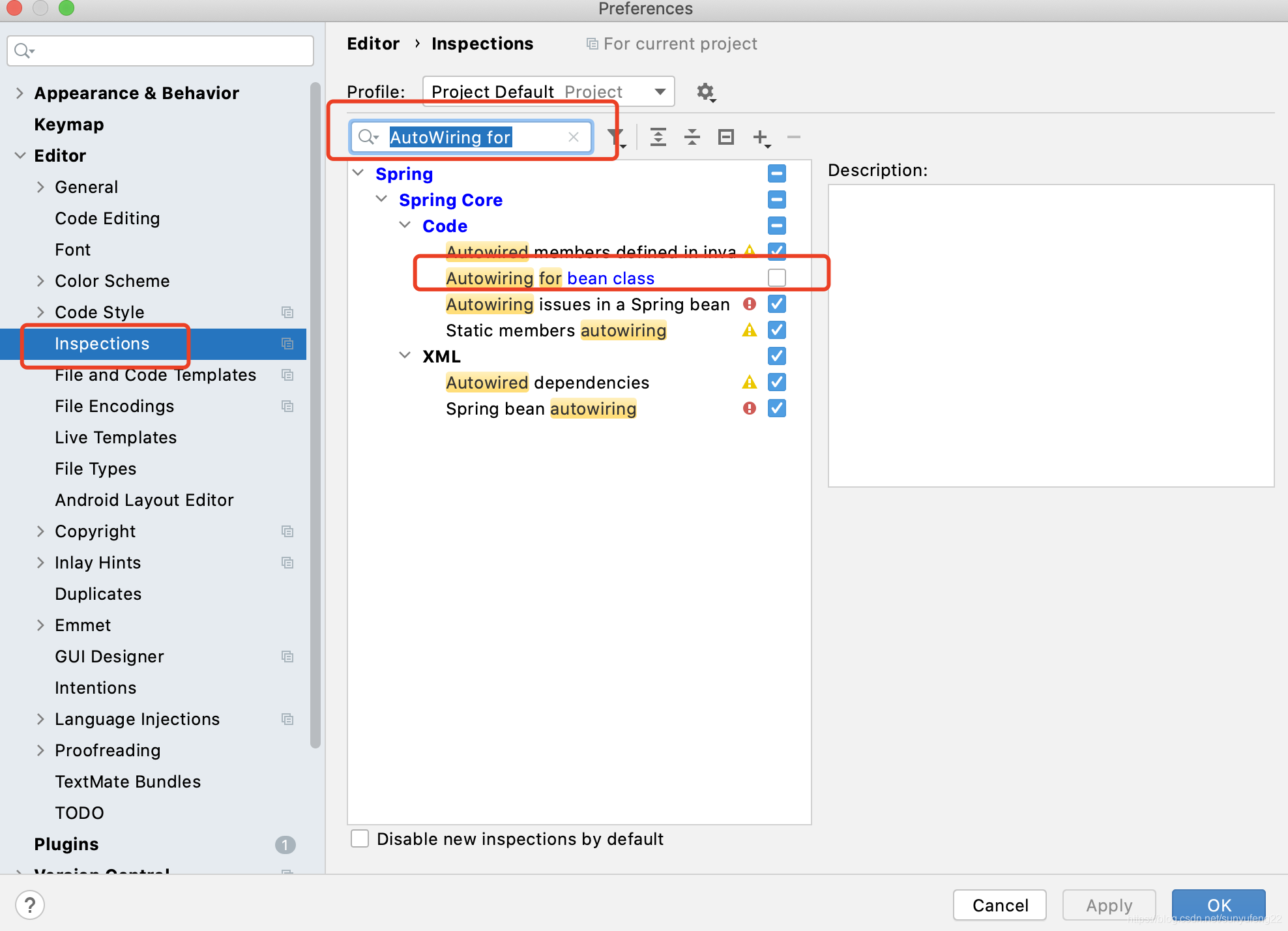 搜索AutoWiring for 关闭提示
