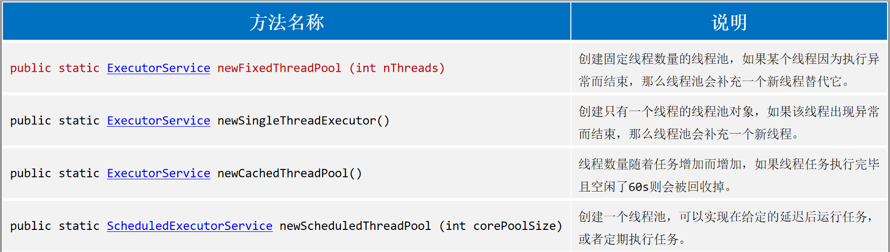 Executors是线程的工具类,有很多静态方法可以创建线程池对象,但是底层都是通过线程池的实现类ThreadPoolExecutor创建线程池对象,但是使用工具类创建线程池对象存在系统风险.