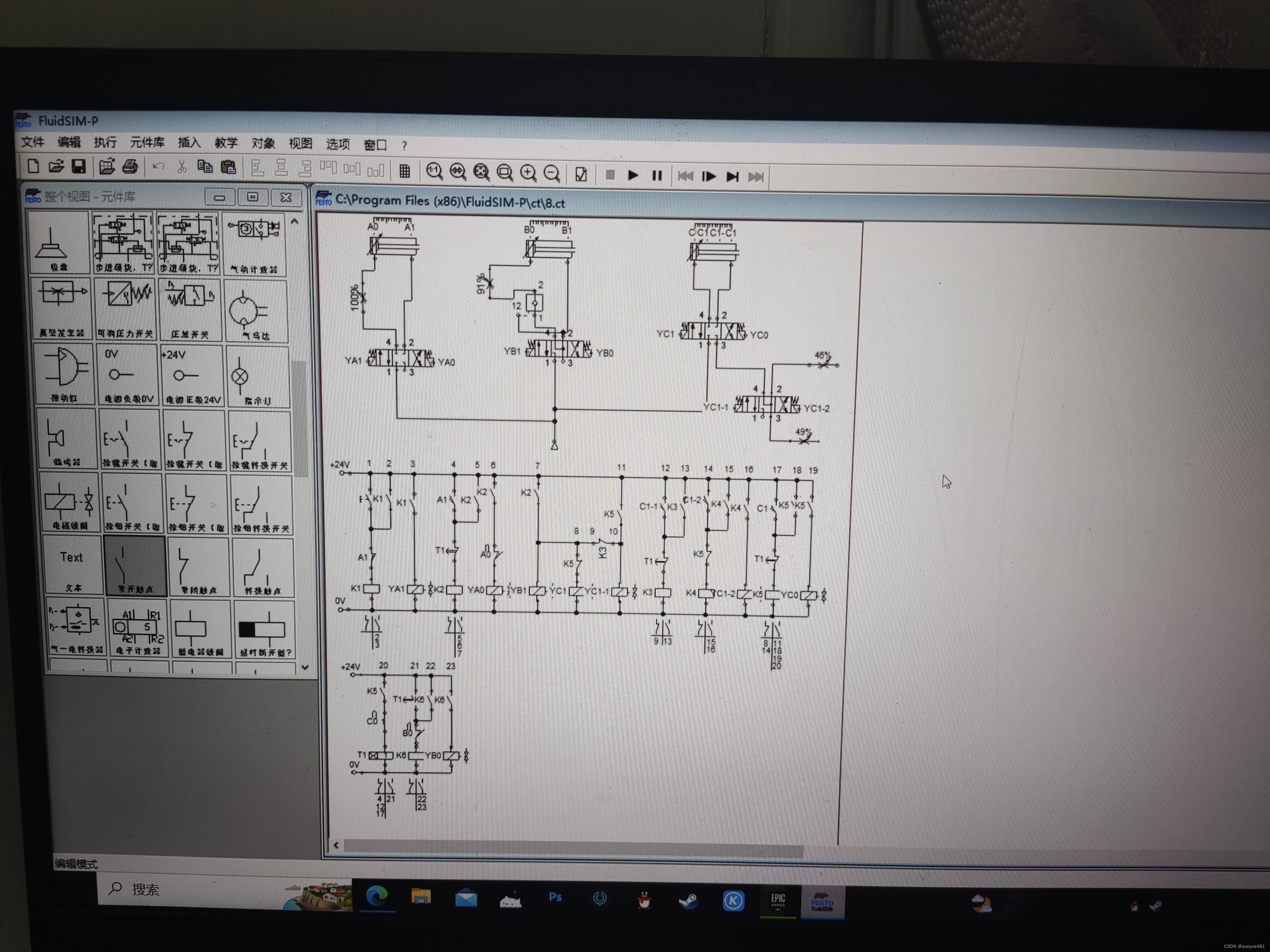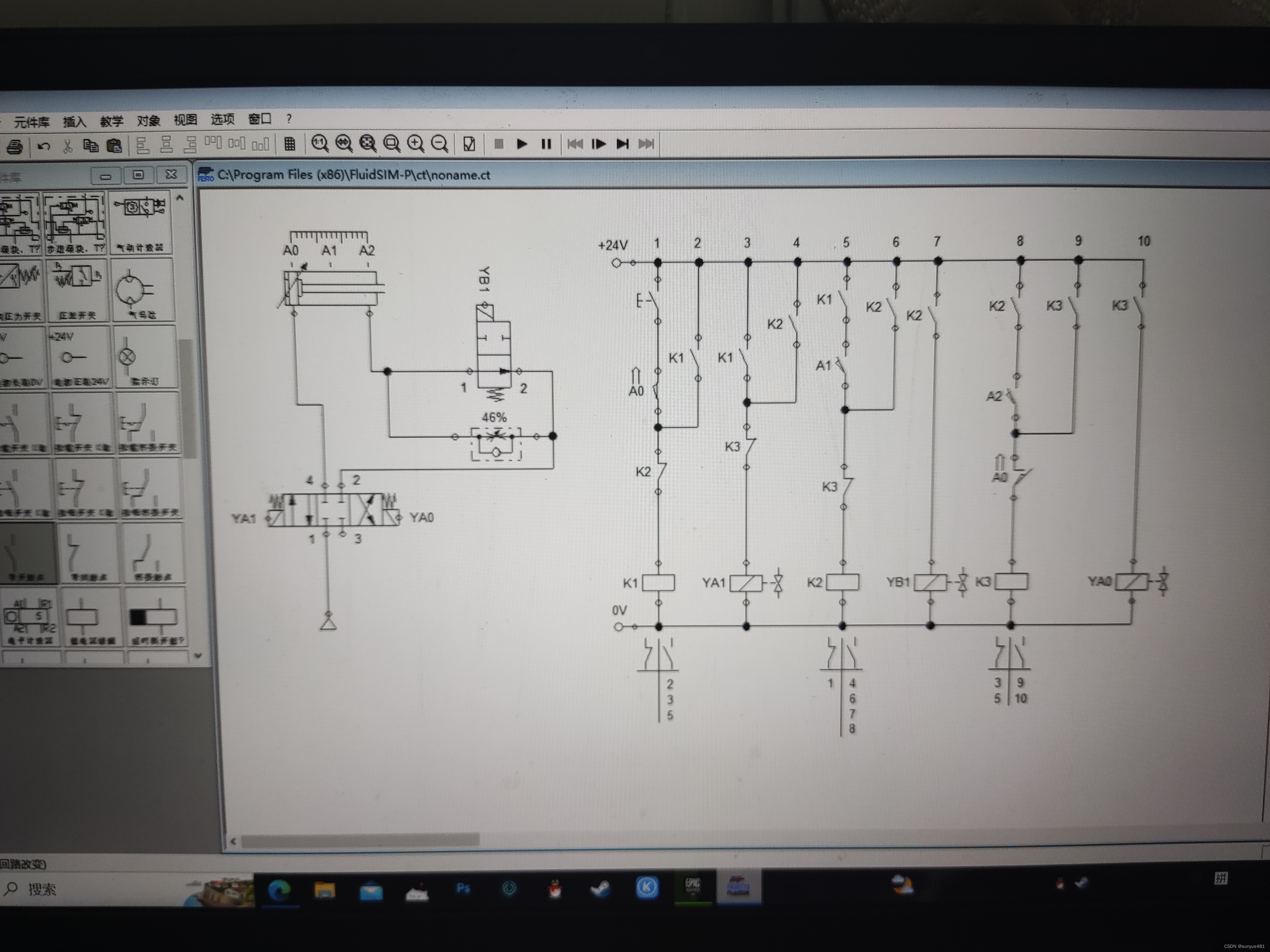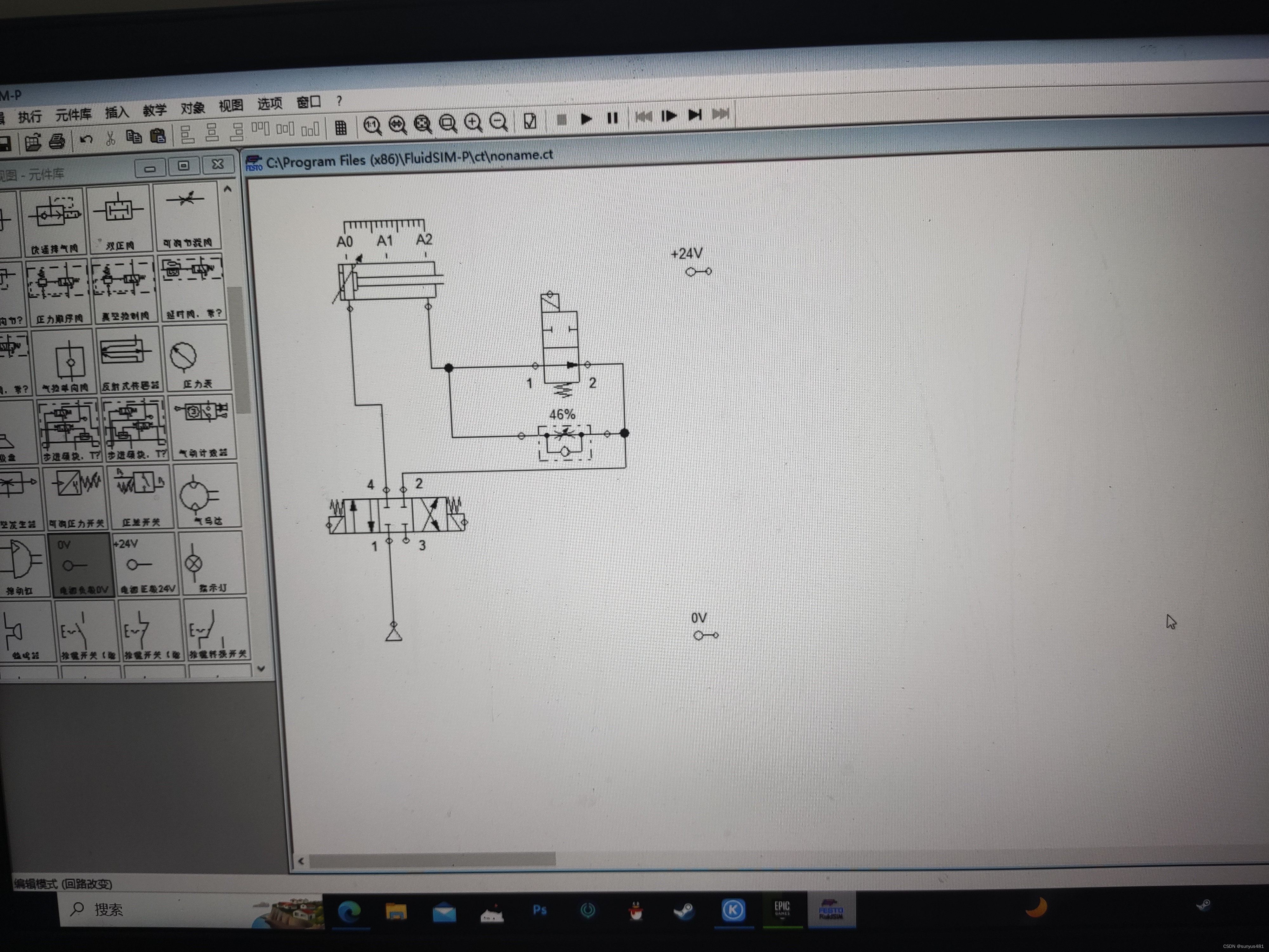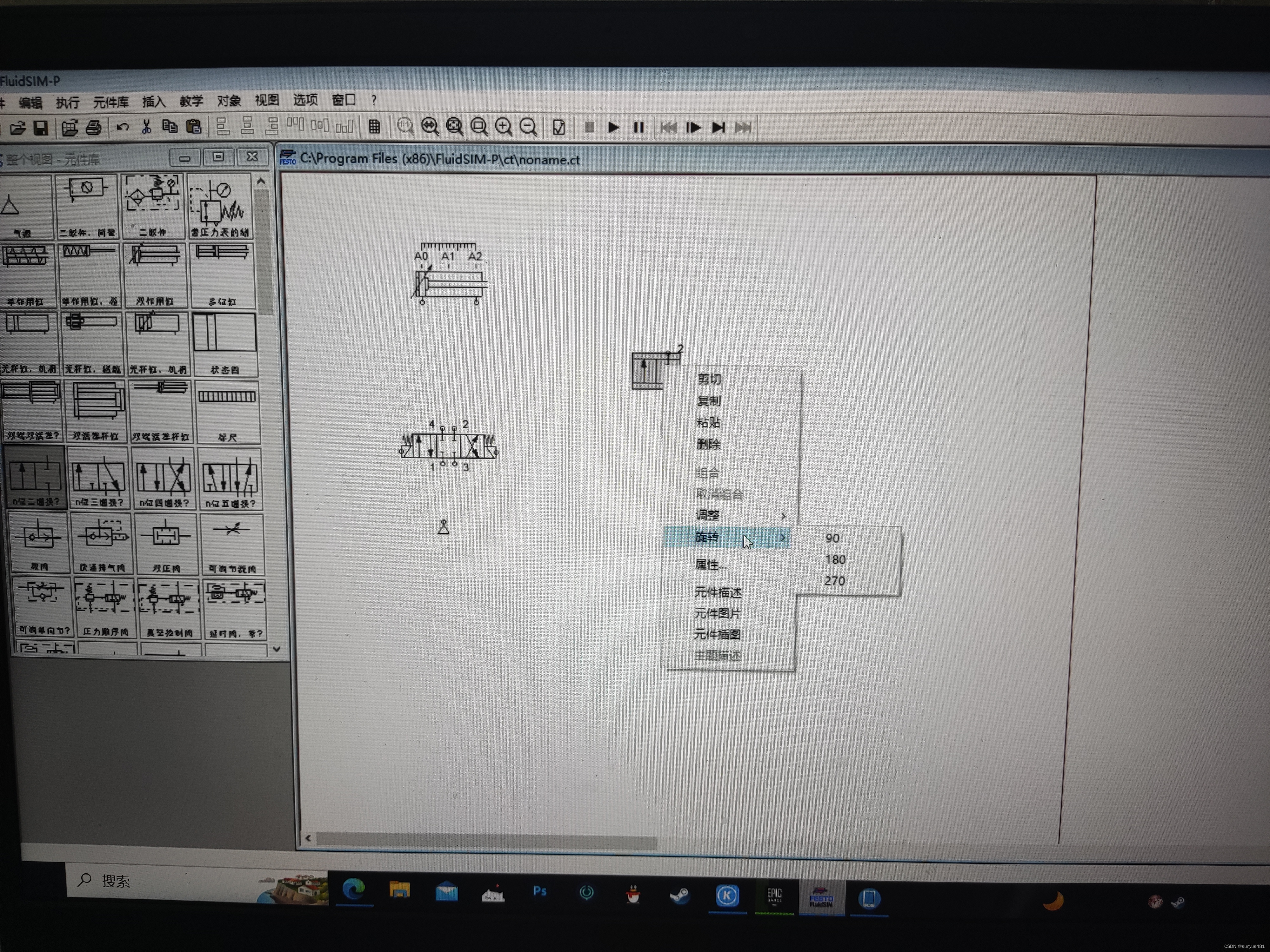 首先,FluidSIM-P 的界面设计简洁直观,使得操作变得轻松愉快。我可以通过拖放元件和连接线路的方式快速构建电路。元件库中包含了丰富的液压、气动和电气元件,(气动中会出现少部分元件的情况,当然是在使用液动原理图转换为气动时会出现)满足了各种设计需求。不仅如此,我还可以自定义元件的参数,灵活地调整系统的各个方面。