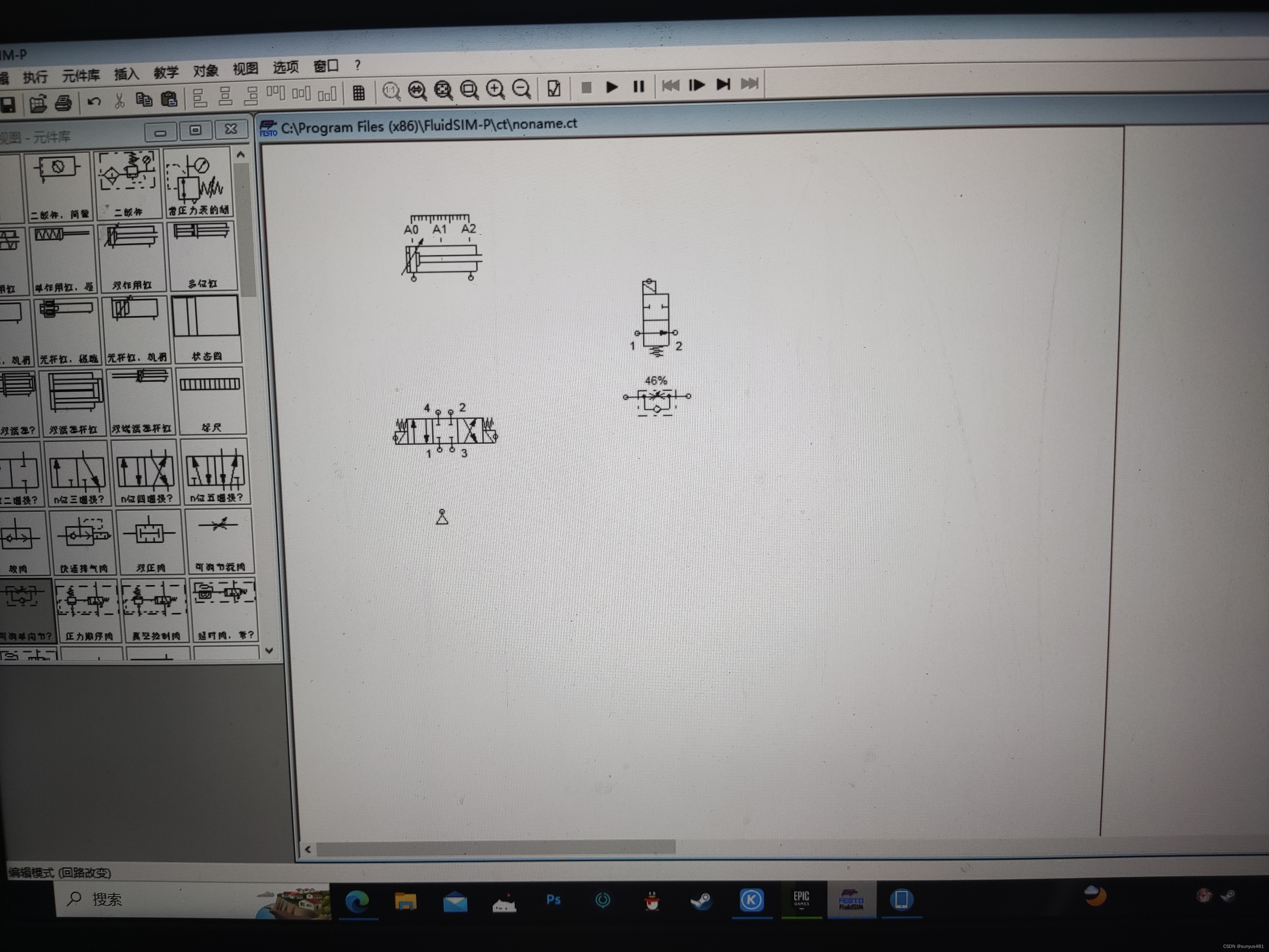 1.打开FluidSIM-P,在左上角有新建,新建后就可以进行符号放置和配置,先放一个气源提供动力