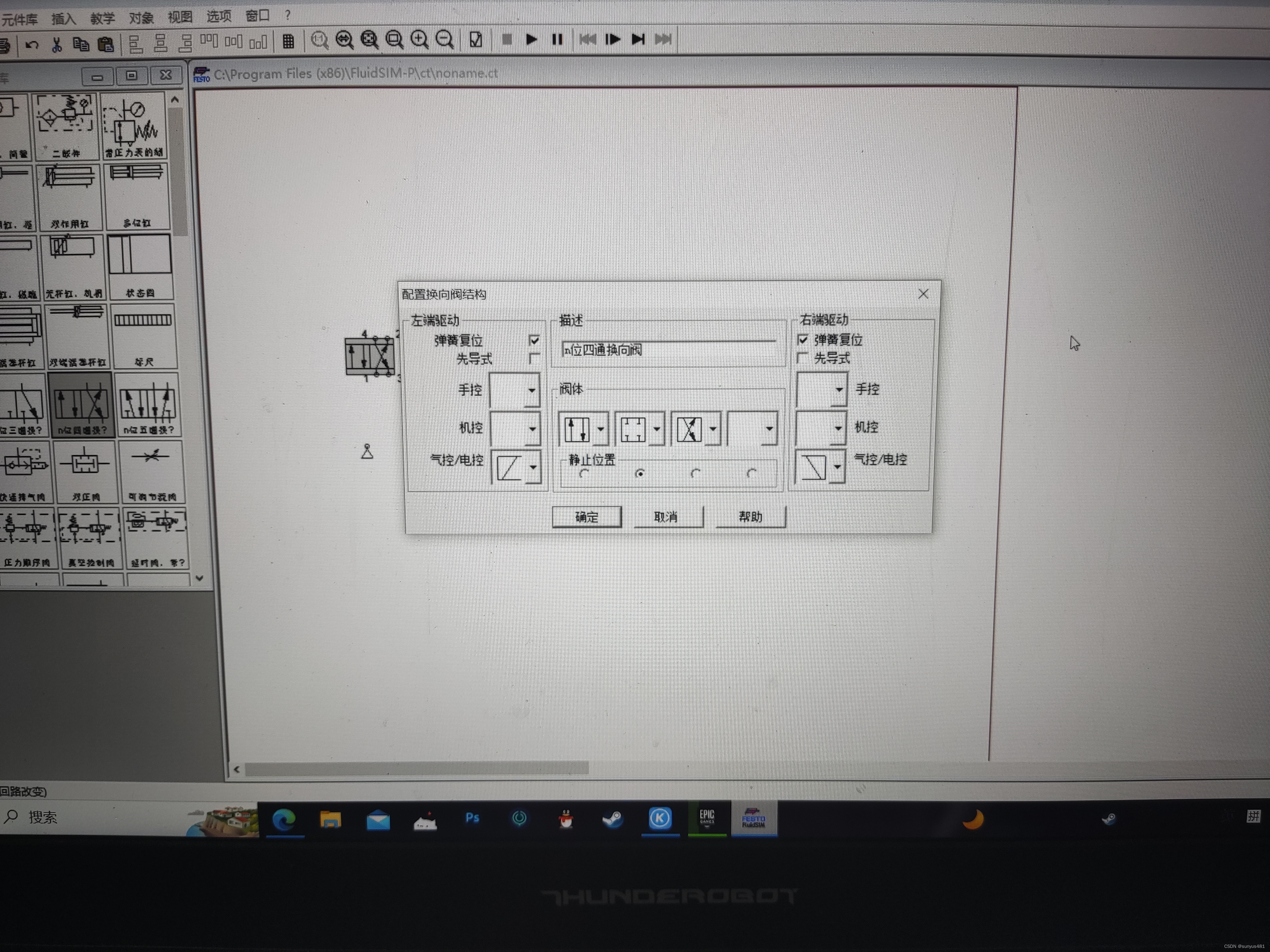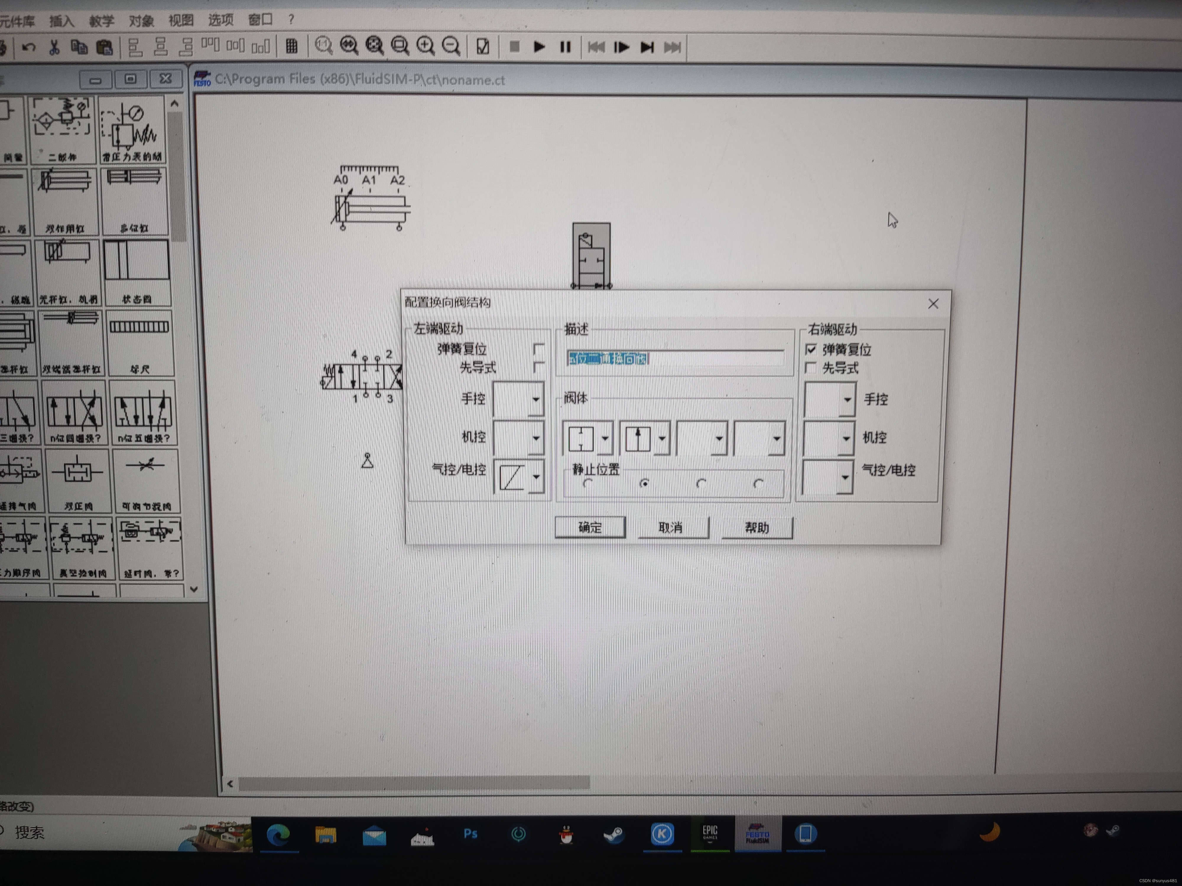 2. 在左边再选择一个n位四通换向阀,双击进入配置界面,按图配置。