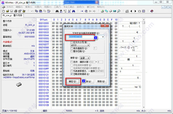 12、双击Entire Memory进入查看,然后ctrl+F(查找的快捷键),查找对象为:458321657959。然后点击“确定”