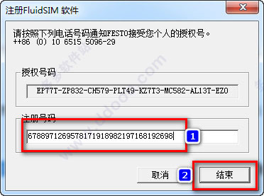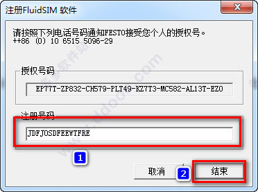 8、接下来会提示输入注册号码界面,在注册号码界面选择输入:jdfjosdfeewtfre.然后点击“结束”