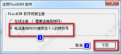 7、安装完成后启动FluidSIM3.6.会跳出注册信息界面。选择“电话通知festo接受...”然后点击“下一页”