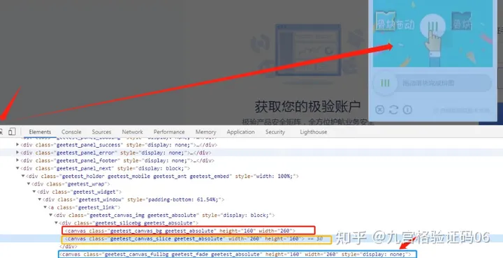 通过观察,验证码的图片都是以<canvas>元素在页面上展示,并有三张图片。第三张图片的属性设置为style="display: none;",使其隐藏。我们可以更改页面代码来查看这张隐藏的图片。