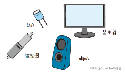 在需要向用户反馈某些信息时,显示器、喇叭、LED 这些用于输出信息的设备就会发挥作用。