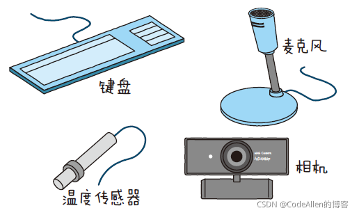 为了让设备获取周边情况和用户操作等信息,必须在机器上实现传感器和按钮等元件(电子器件)。