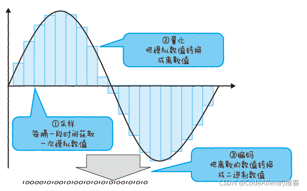 把传感器获取的测量值用连续的电子信号表示出来,就是模拟信号。想用PC 处理模拟信号,就需要进行模拟/ 数字(A/D)转换,把模拟信号转换成离散值,即数字信号。