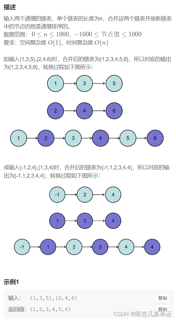 合并两个排序的链表_牛客题霸_牛客网 (nowcoder.com)