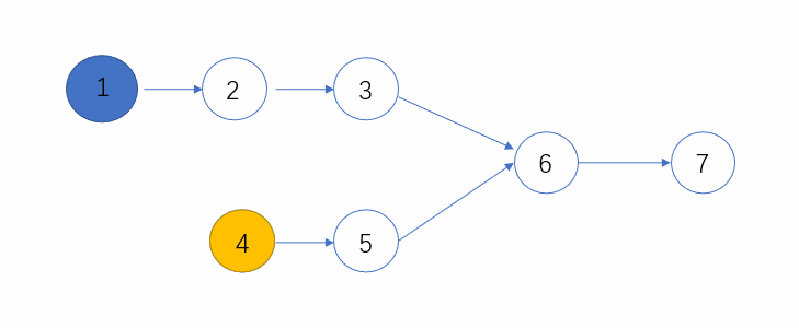 2. 依次遍历如图所示,遍历完该链表后再从另一个链表开始遍历 直到相遇即为第一个公共结点