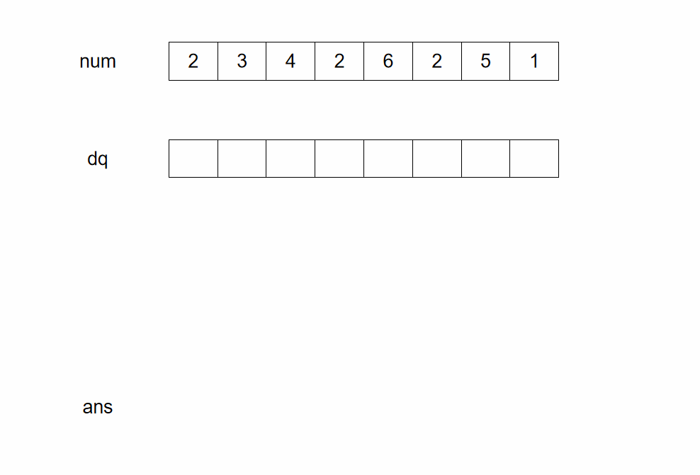 class Solution { public: vector<int> maxInWindows(const vector<int>& num, unsigned int size) { vector<int> ans; deque<int> dq; // 双端队列, 里面存的下标 int n = num.size(); for(int i = 0; i < n; i++){ while(!dq.empty() && num[i] > num[dq.back()]){ // 排除无用元素 dq.pop_back(); } dq.push_back(i); // 将当先元素的下标入队 if(i - dq.front() + 1 > size) dq.pop_front(); // 若队头元素不合法就弹出 if(i >= size - 1) ans.push_back(num[dq.front()]); // 将窗口最大值加入结果数组 } return ans; } };时间复杂度o(n)