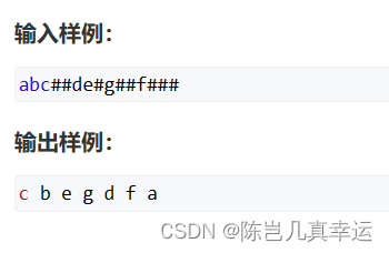 #include<bits/stdc++.h> using namespace std; string str; int k = 0; void dfs() { if(str[k]=='#') { k++; return ; } char r = str[k++]; dfs(); //左子树 dfs(); //右子树 cout<<