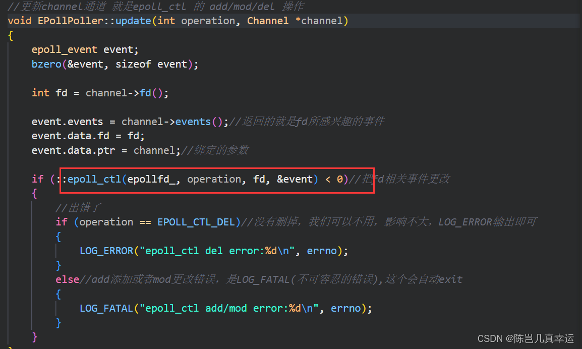 * 当改变channel所表示fd的events事件后,update负责在poller里面更改fd相应的事件epoll_ctl