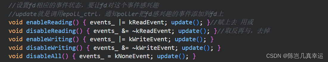 void enableReading() { events_ |= kReadEvent; update(); }//赋上去 用或