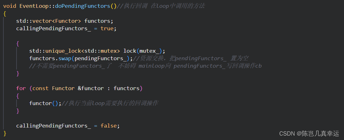 void EventLoop::doPendingFunctors()//执行回调 在loop中调用的方法