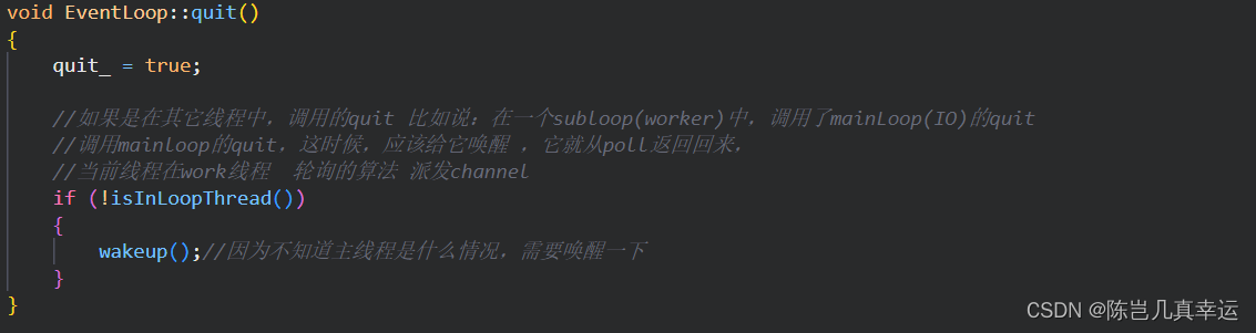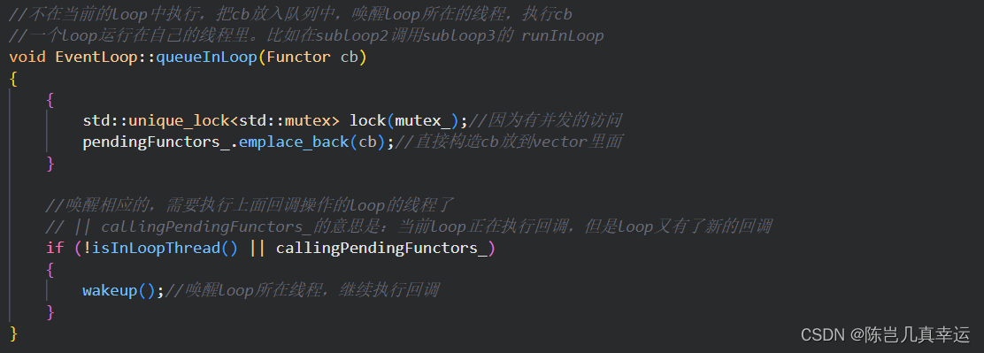 2. callingPendingFunctors_为true,表示当前的loop正在执行回调,没有阻塞在loop的pol上 (pol是调用的epoll wait)