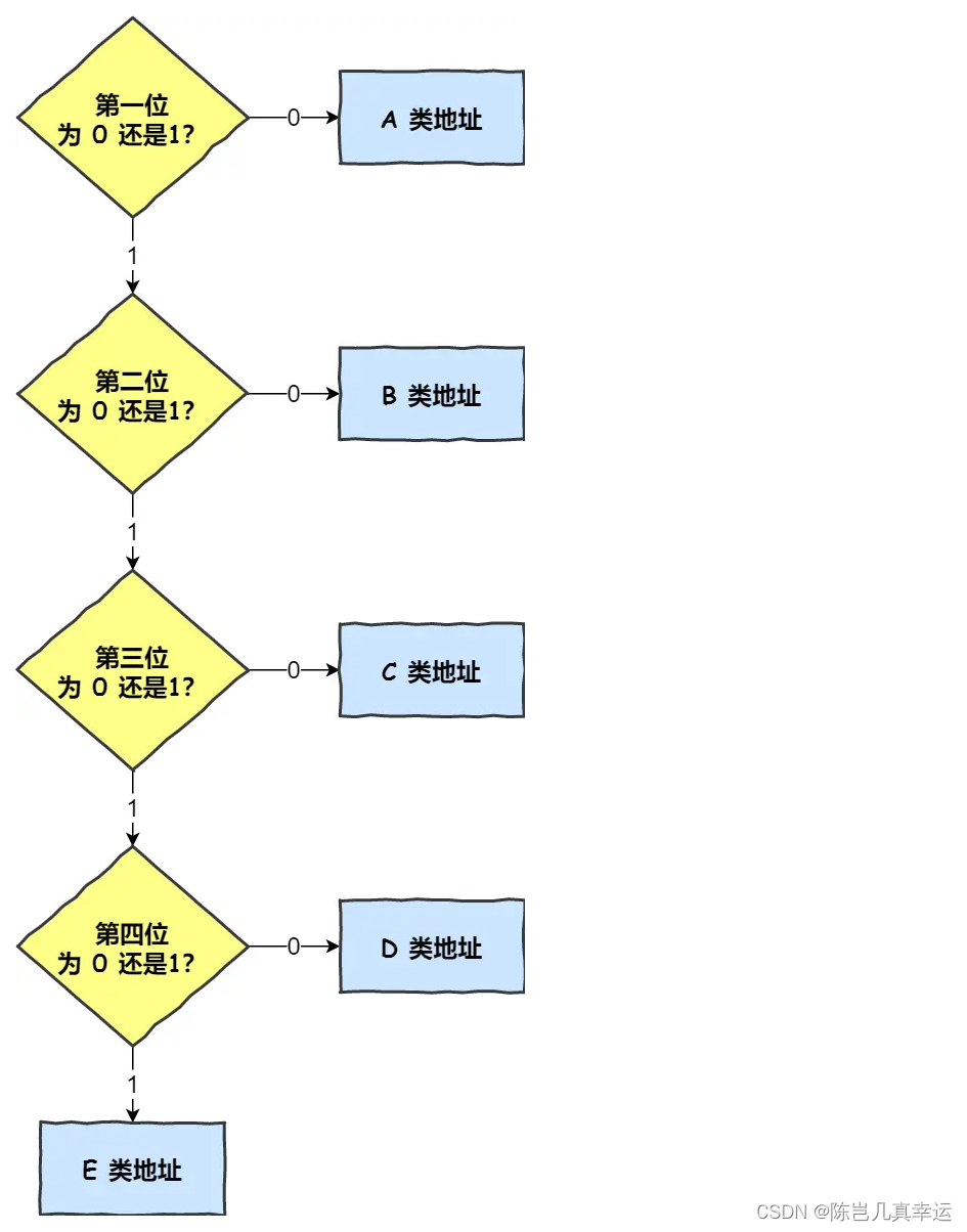 通过 IP 地址的前几位标识 IP 地址的种类。单播、组播、任播。