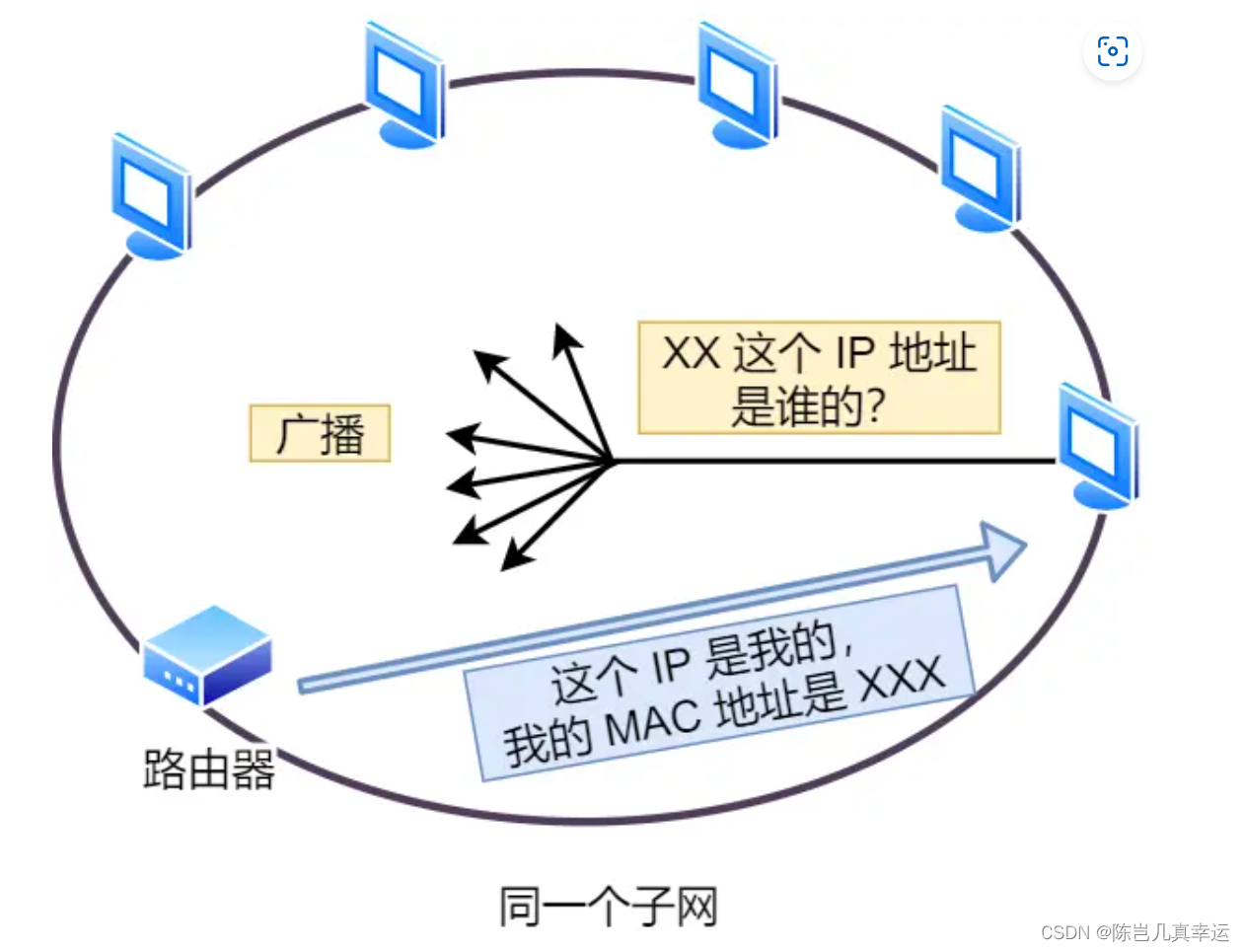 - 当源主机需要将一个数据包要发送到目的主机时,会首先检查自己的 ARP 列表,是否存在该 IP 地址对应的 MAC 地址;如果有﹐就直接将数据包发送到这个 MAC 地址;如果没有,就向本地网段发起一个 ARP 请求的广播包,查询此目的主机对应的 MAC 地址。此 ARP 请求的数据包里,包括源主机的 IP 地址、硬件地址、以及目的主机的 IP 地址。