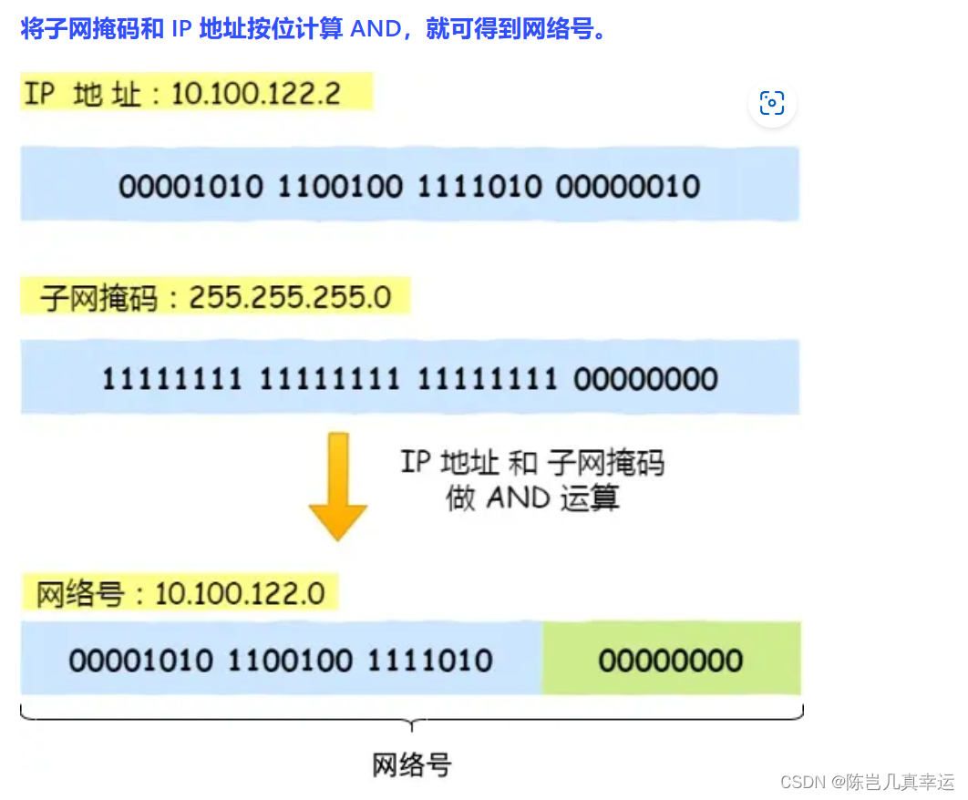 子网掩码:掩盖掉主机号,用于划分网络号和主机号 。