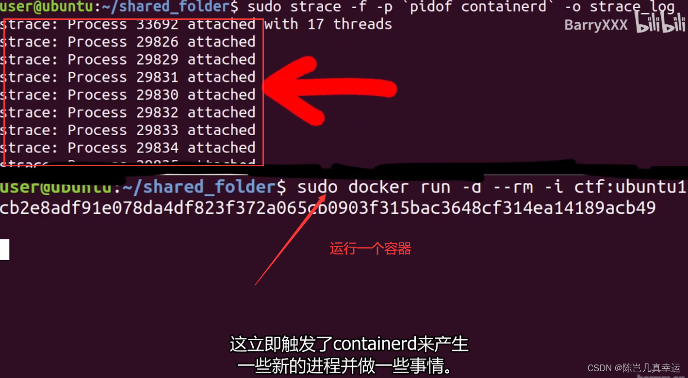 从树中可以看到我们在容器中执行的watch在containerd子进程中: