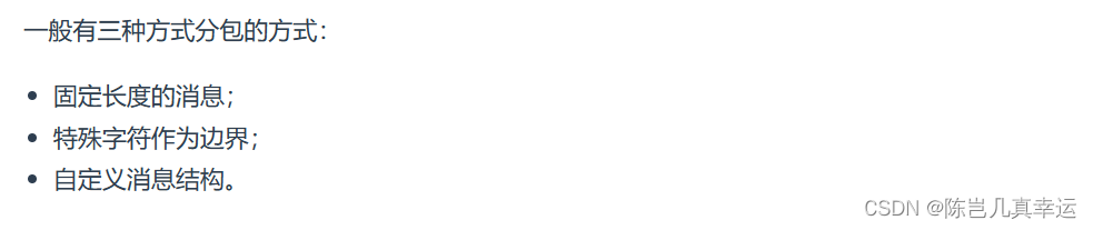 我们可以自定义一个消息结构,由包头和数据组成,其中包头包是固定大小的,而且包头里有一个字段来说明紧随其后的数据有多大。