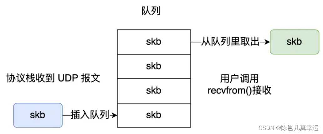 操作系统接收到UDP报文后放入队列,队列每一个元素都是一个UDP报文