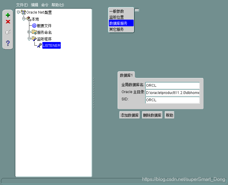 注意:不建议直接手动操作配置文件,尽量采用可视化管理工具来操作。如果出现TNS监听异常,或者服务无法打开,尝试把listener.ora备份后删除,在重新用可视化工具进行配置。