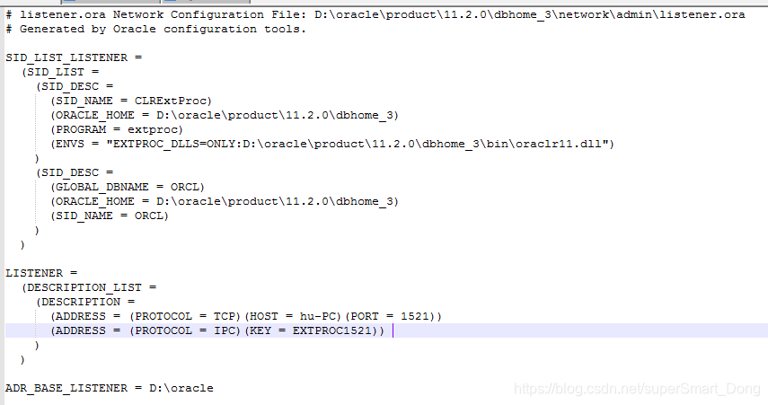 主要文件有三个,都位于 $ORACLE_HOME\NETWORK\ADMIN路径下的 sqlnet.ora 、listener.ora、tnsnames.ora.我的这三个文件在D:\oracle\product\11.2.0\dbhome_3\NETWORK\ADMIN。直接可以用可视界面进行修改参数,或者用vim编辑。