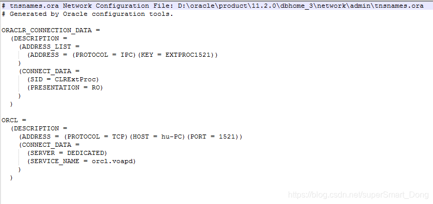 打头的左对齐的变量就是服务名(SID),例如上文的ORCL、ORACLR_CONNECTION_DATA。