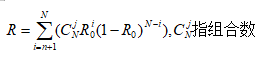 对于 N模冗余系统 ,N=2n+1个子系统,和一个表决器组成,表决器把N个子系统中占大多数的输出多为系统的输出,因此只要有n+1 个子系统能正常工作。假设表决器完全可靠的,每个子系统可靠性为R0,则N模冗余系统的可靠性为