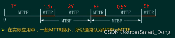 而 MTTR 远小于MTTF ,因此 MTTF 近似于MTBF。