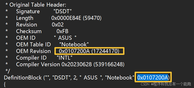 2、搜索DefinitionBlock,将定义的 DefinitionBlock 递增1,我的原来是0x01072009,加一后改为0x0107200A(注意有两处,同时OEM Revision中有一个括号内的十进制数字也要加1)