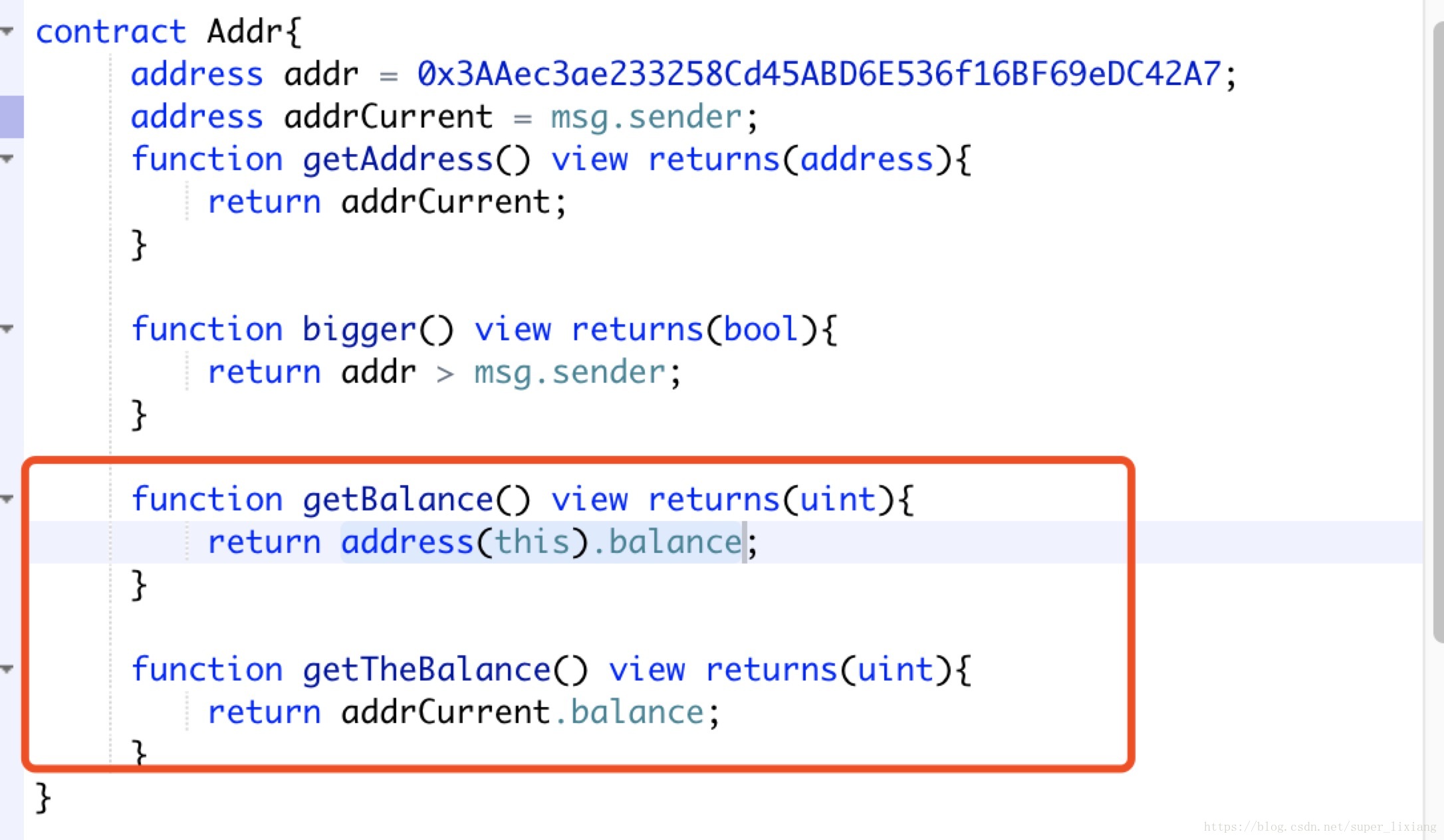 属性,balance:通过该属性可以获取指定地址的余额,通过address(this).balance可以得到当前地址的余额