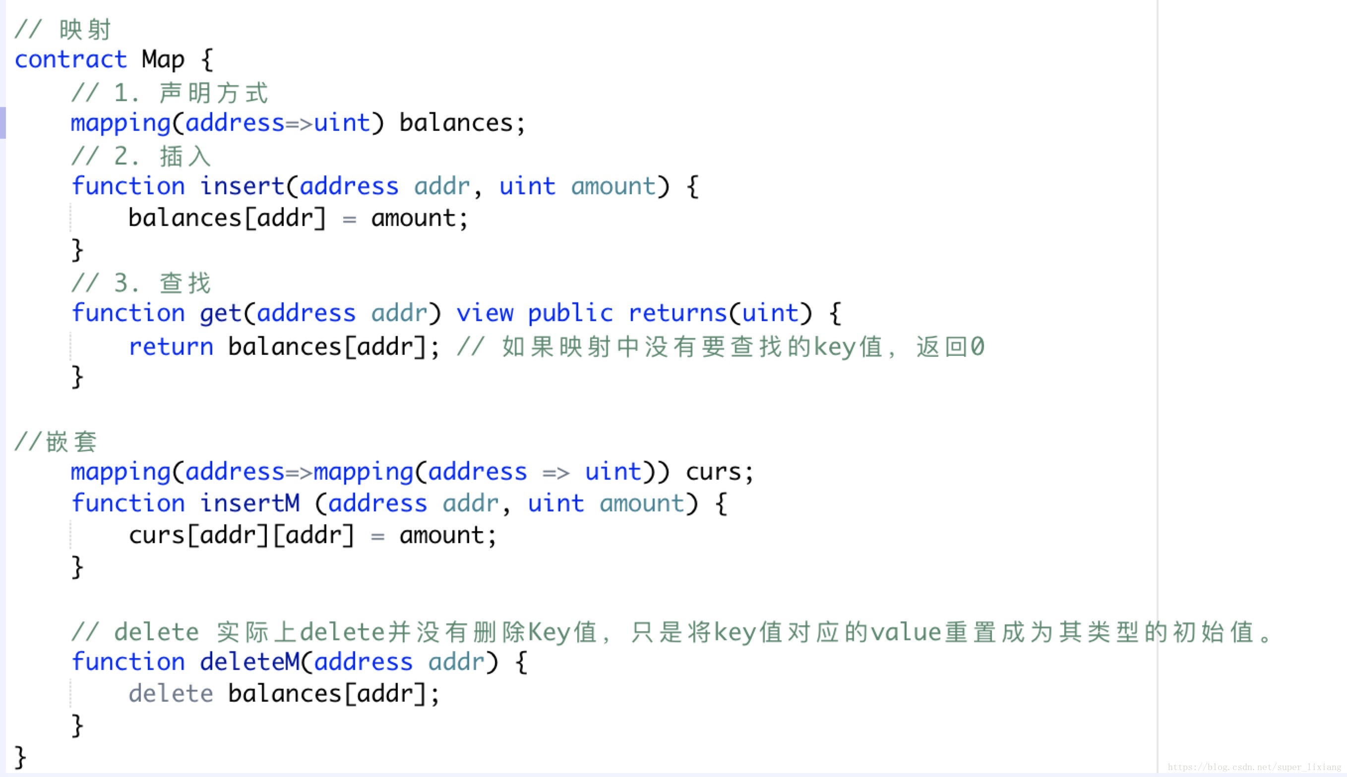 - 在solidity中映射没有长度,也没有键集合(列表),值集合(列表)这样的概念