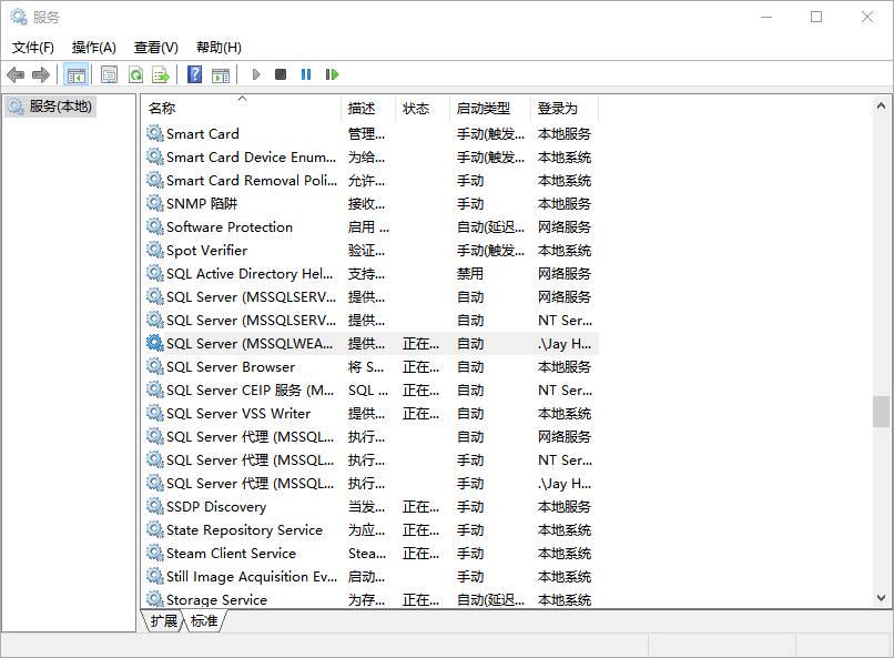 百度后发现是SQLSERVICE服务并没有启,去到服务中启动时又有报错:启动icrosoft SQL Server 服务报错:发生错误1069:由于登录失败而无法启动服务