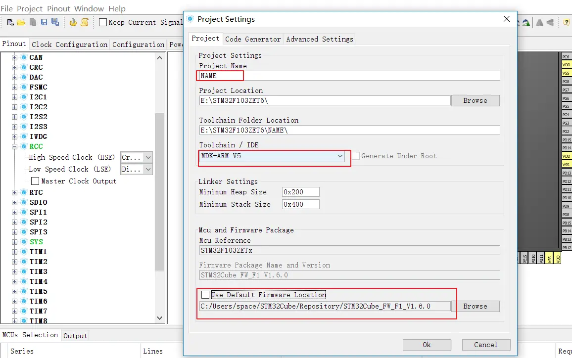 使用STM32F103ZET6,开发环境STM32CubeMX,keil5 MDK5