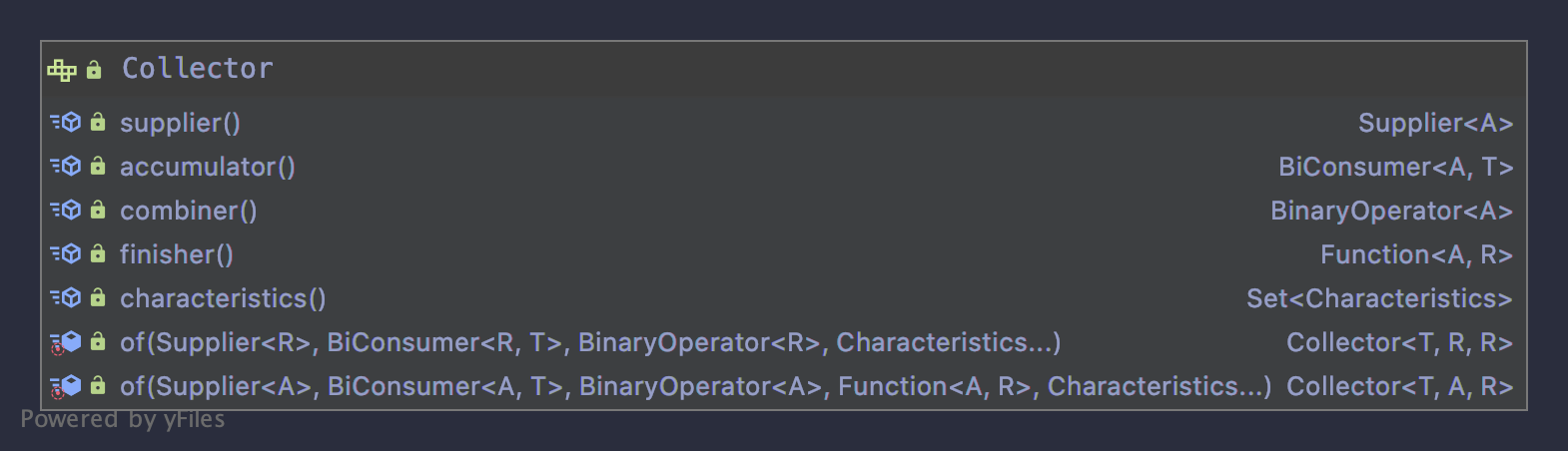 同时Collector也提供了两个静态of方法来方便我们创建一个Collector实例。
