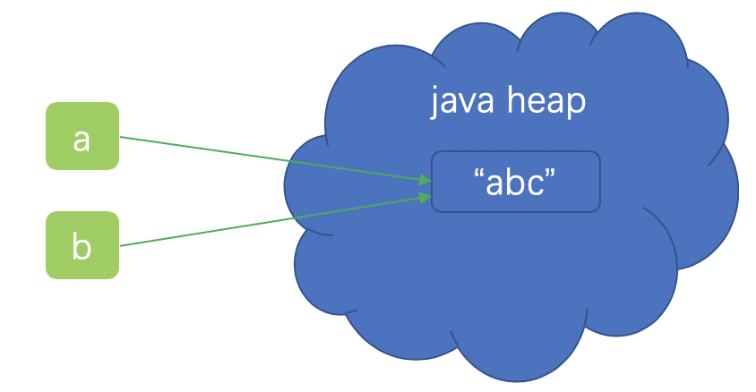对于java虚拟机来说,"abc"是字符串字面量,在JDK 7之后,这个字符串字面量是存储在java heap中的。而在JDK 7之前是有个专门的方法区来存储的。