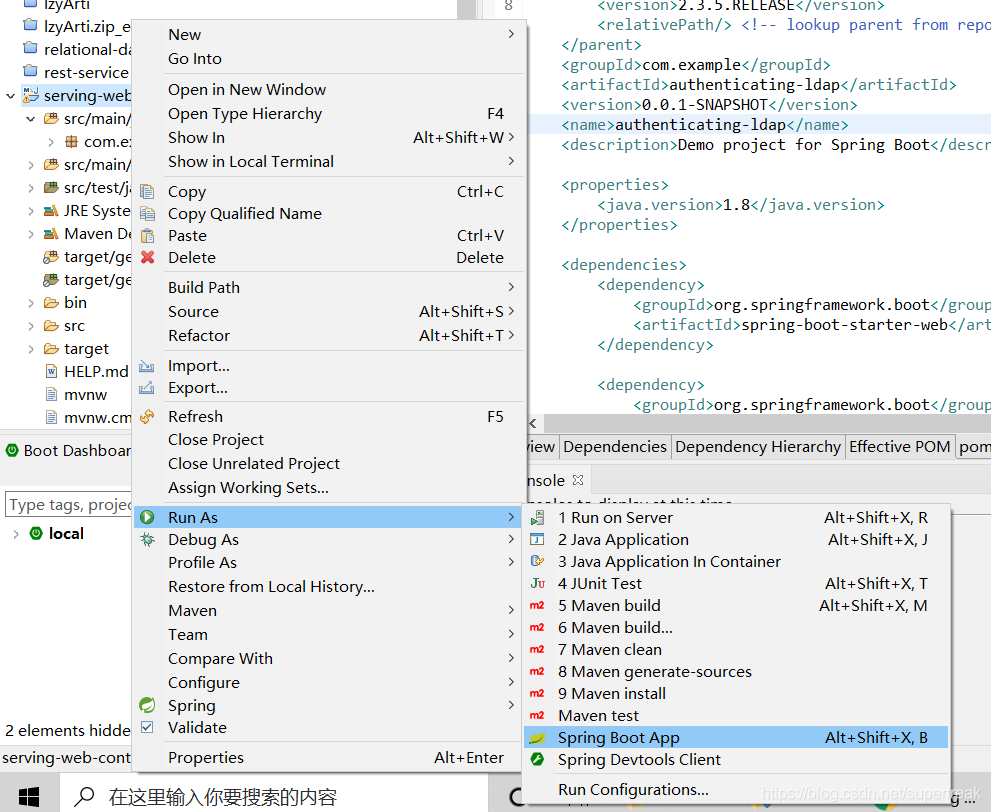 在做下面的测试之前,可以在SpringToolSuite4中,右键点击整个项目,选择Run as ---》SpringBootApp