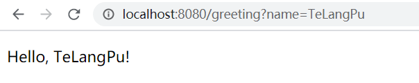 浏览器中键入:http://localhost:8080/greeting?name=TeLangPu