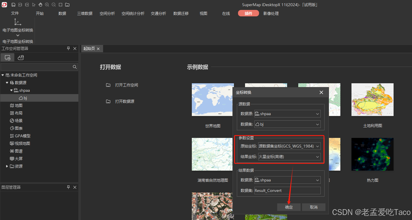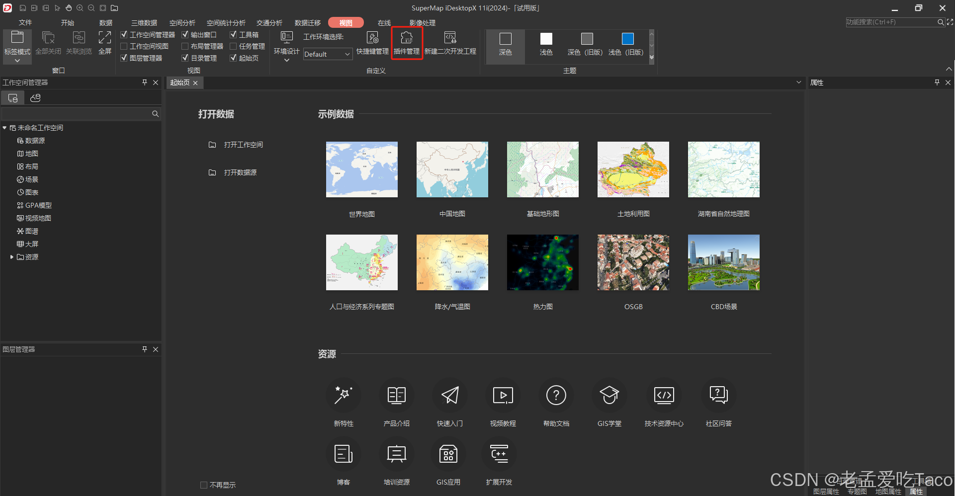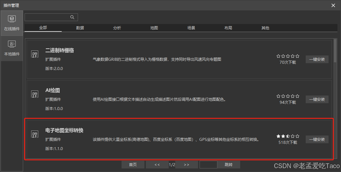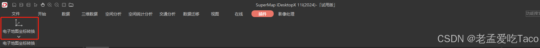 打开桌面iDesktopX软件在导航栏【视图】模块中选择【插件管理】功能,选择【电子地图坐标转换】功能进行安装。安装后重启iDesktopX。