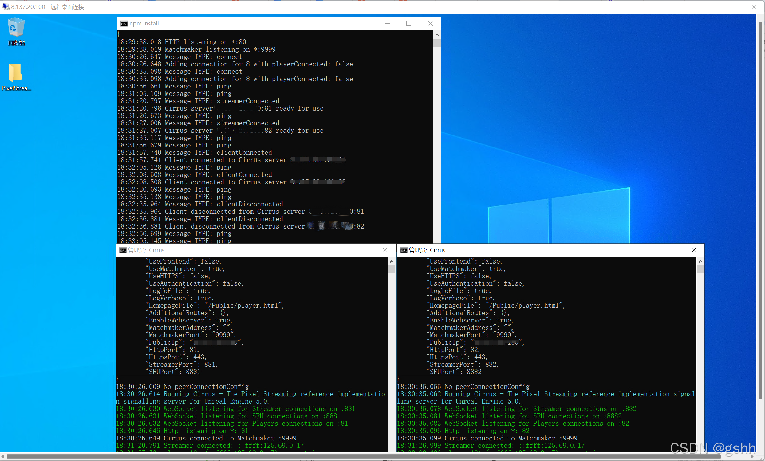 总结一下UE云渲染多实例部署,首先启动Matchmaker服务,然后启动两个配对的信令服务器,打开两个像素流送程序后,Matchmaker会自动进行端口的分配,前端进行访问即可。