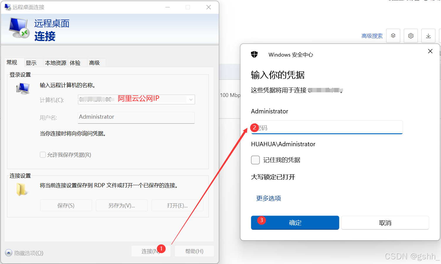 需要将开启信令服务器的相关文件放在云服务器中,我们可以使用远程桌面连接来进行拷贝。打开远程桌面连接,计算机处输入我们的公网IP地址,然后输入我们设定好的用户名密码即可。