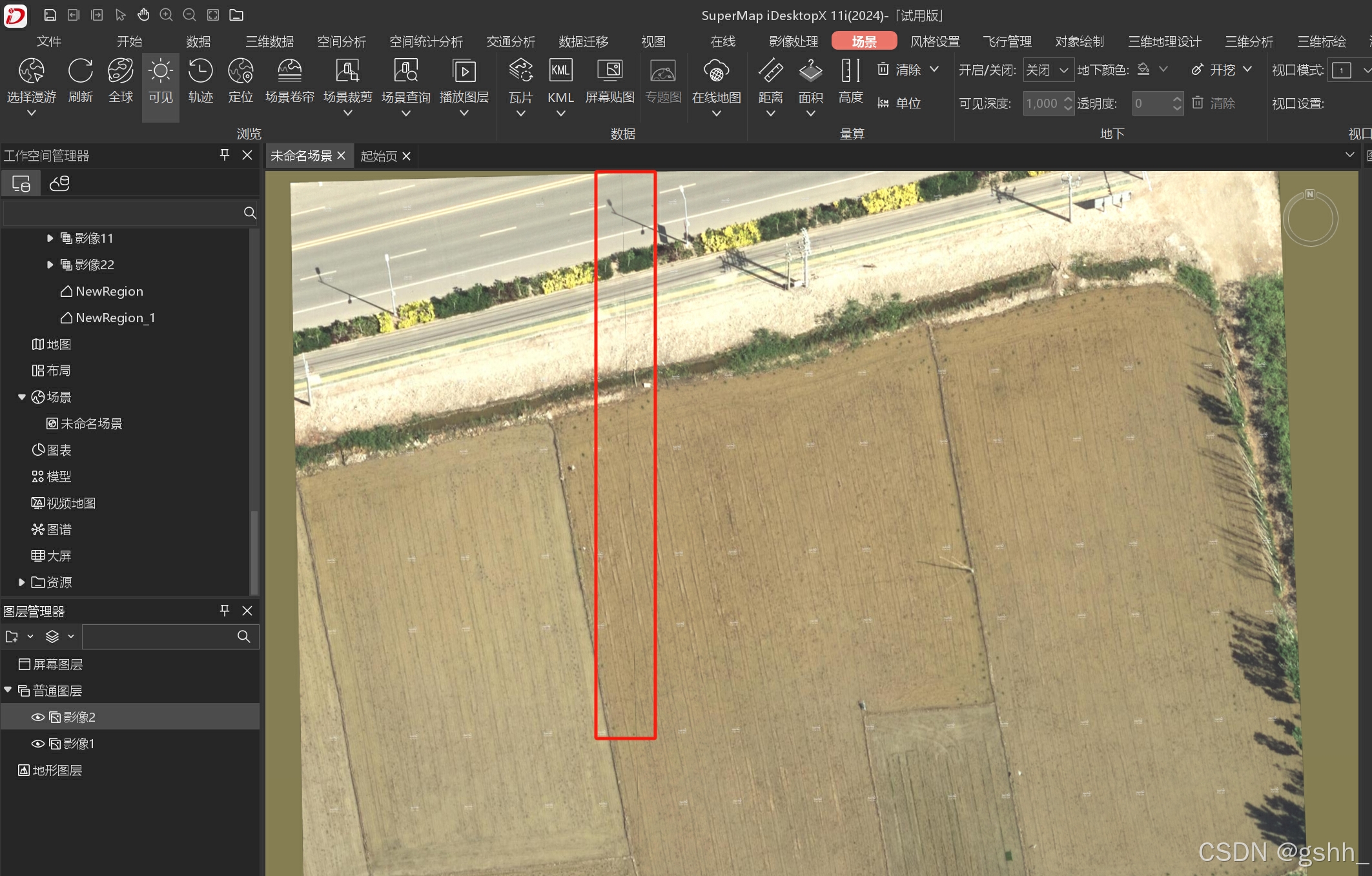 2.如果场景中有矢量缓存(.sci或.sci3d),也是存在场景的 imageryLayers 中,会被同时过滤掉,建议统一命名标识出影像数据,比如本示例影像命名为“影像1”和“影像2”,根据影像name前两个字符为“影像”做判断: