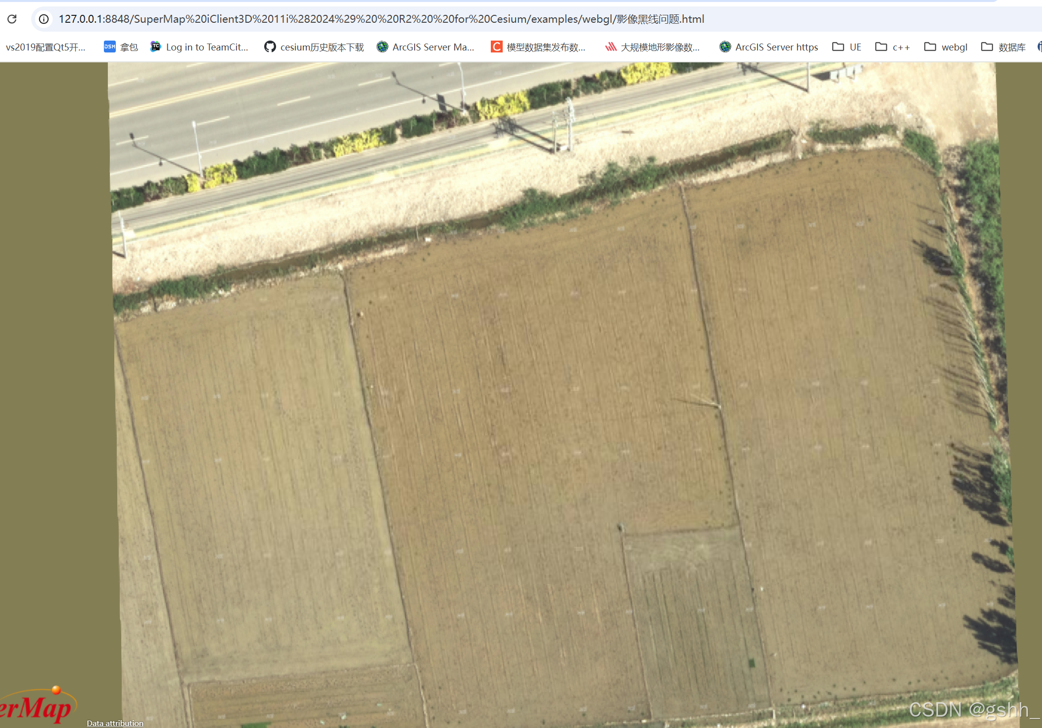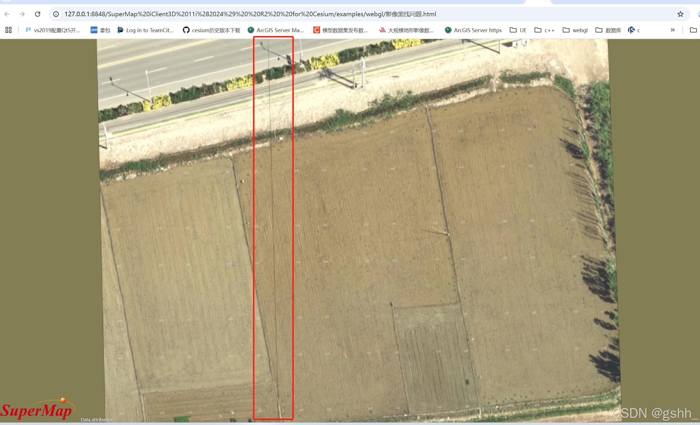 发布服务后,SuperMap iClient3D for Cesium加载多幅影像交界处效果如下: