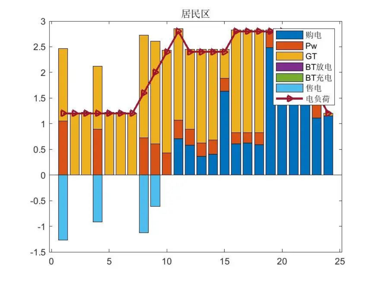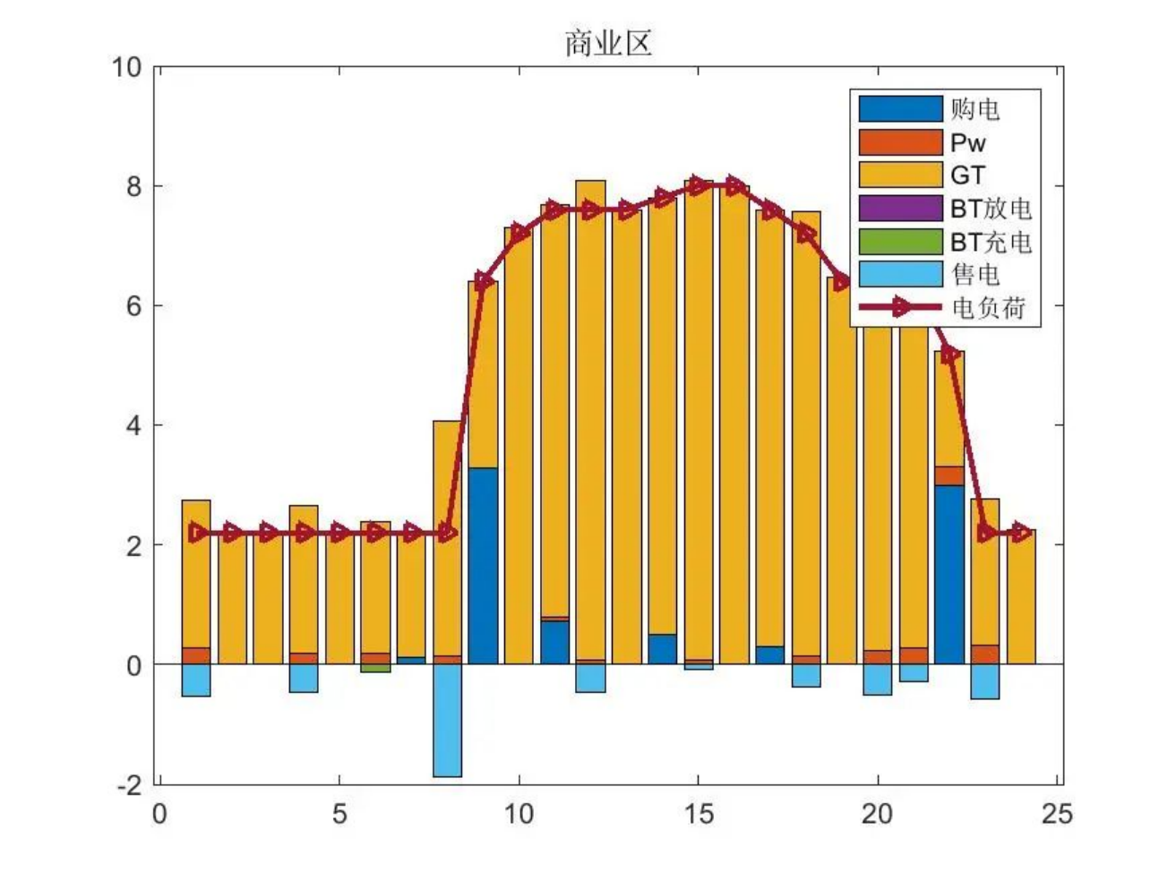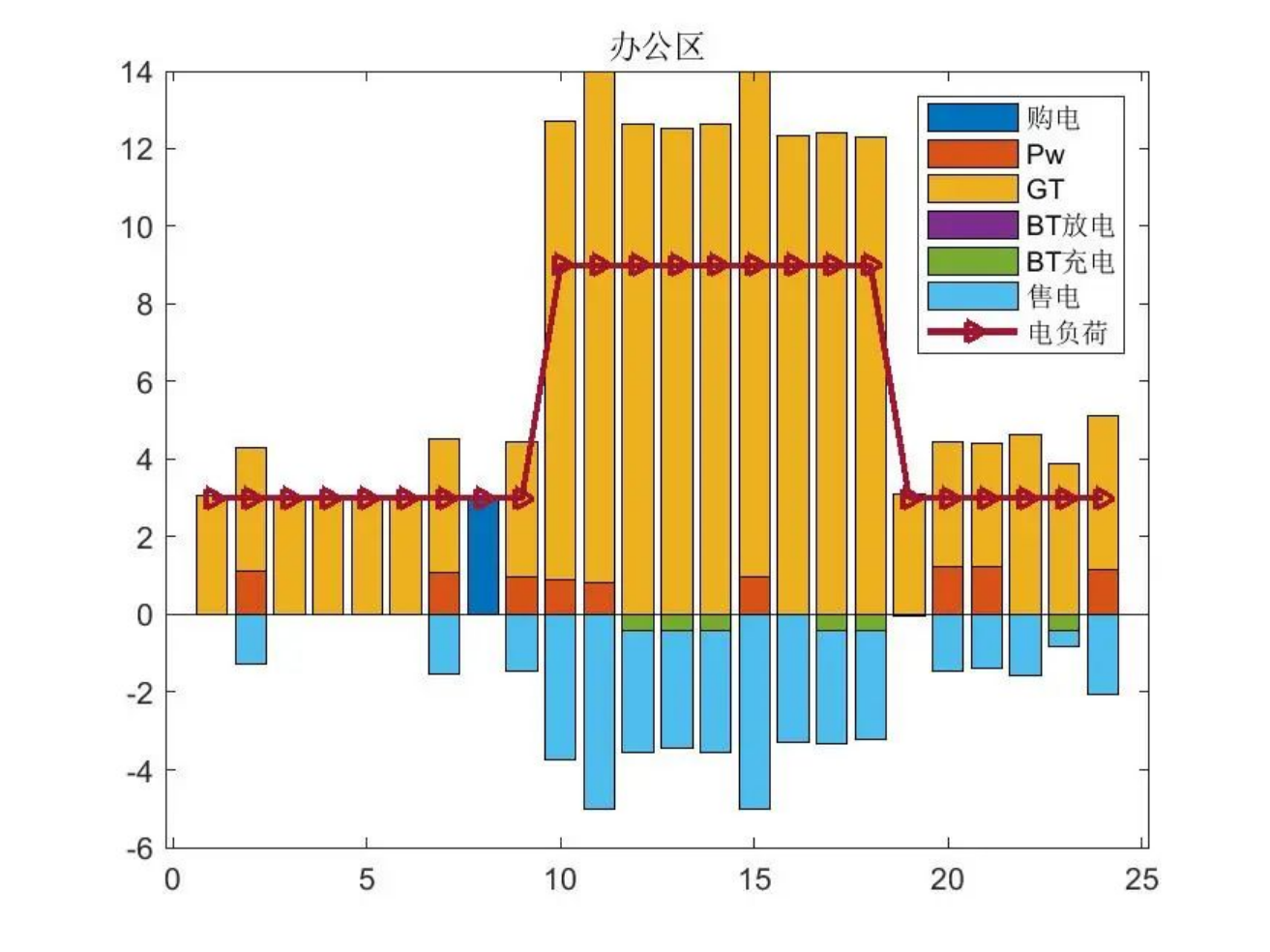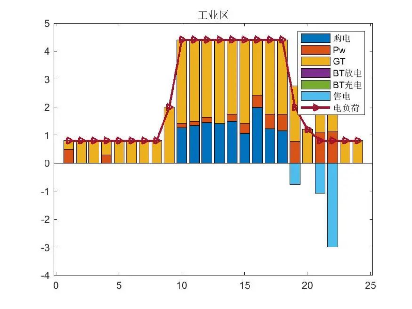 %上述模型为 0-1 混合整数线性规划模型,其中决策变量有:CCHP 中各设备出力、储能装置输入输出