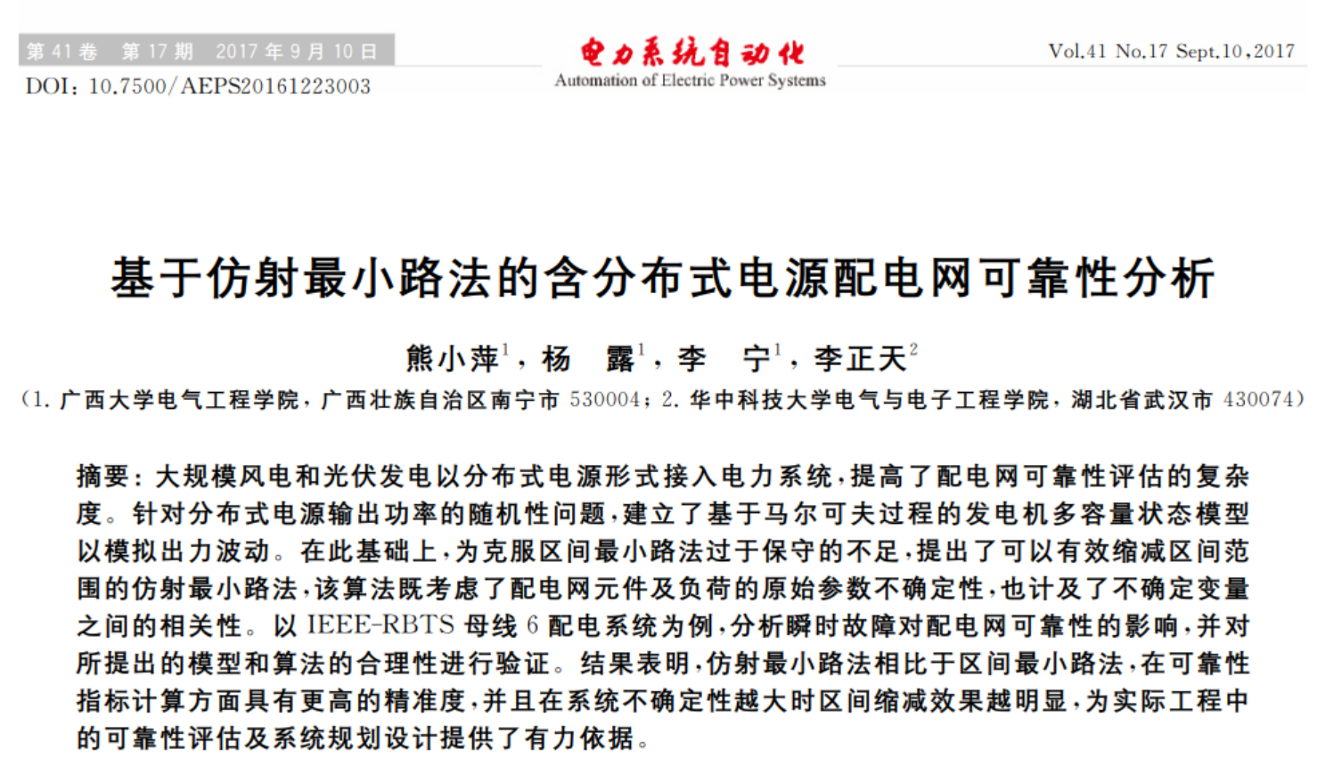 本文介绍了一个使用MATLAB编写的程序,参考《基于仿射最小路法的含分布式电源配电网可靠性分析》。程序利用概率模型和时序模型对配电网进行可靠性评估,并提供了模型节点图和两种方法的结果。
